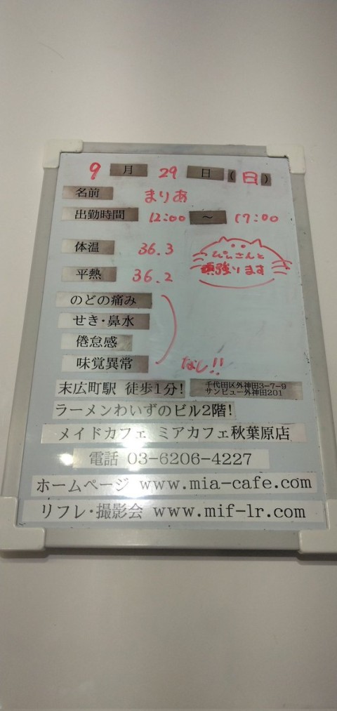 ★メイドカフェ・ミアカフェ #秋葉原 店★ ☕️営業予定日☕️ 🎀9月13日(土)  12-22 くら  12-17 さぶま  17-22 にろ 🎀9月14日(日)  12-17 みさ、新人さん【初お給仕】  17-22 さぶま、くら  リラ&フォトお呼び出し みれい 🎀9月15日(月祝)  12-17 さぶま  17-22 おとめ【卒業】、まな https://t.co/pLZUgClAe3