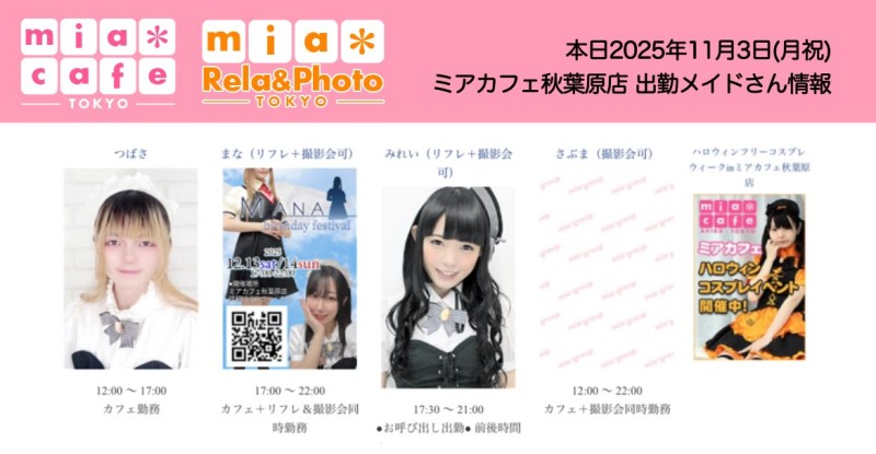 👑本日11月3日(月祝)のミアカフェ秋葉原店