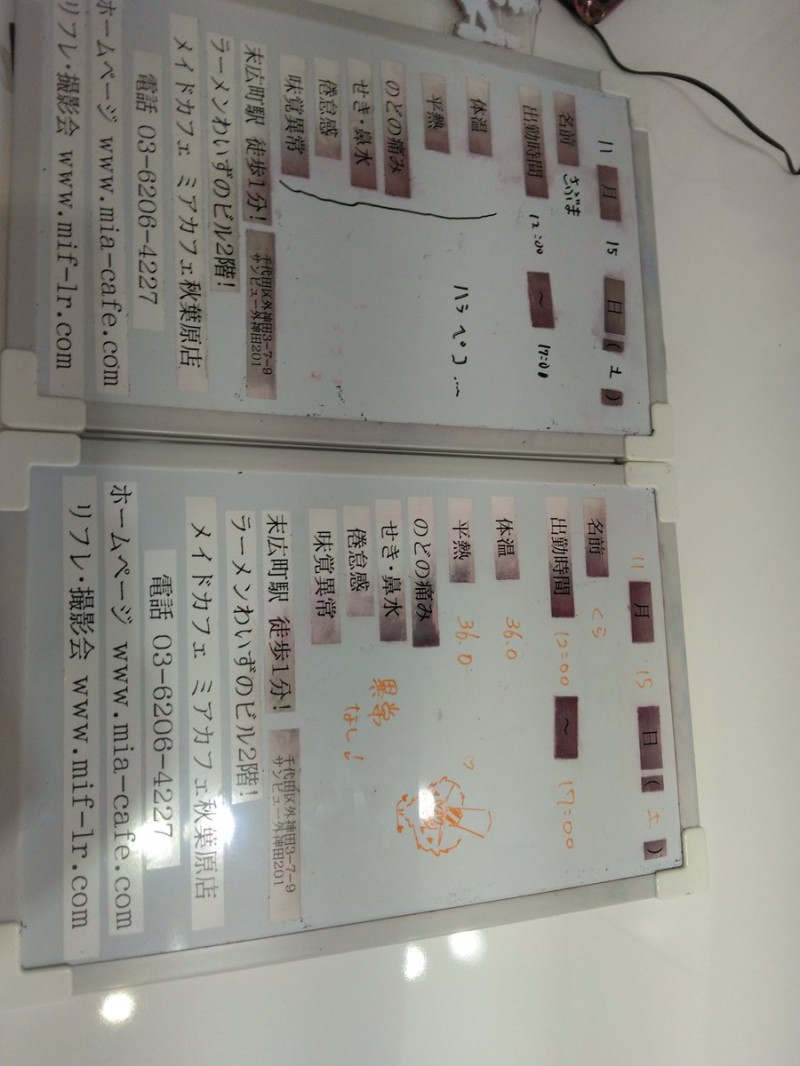 | å¶æ¥æé | âãã¢ã«ãã§æ±äº¬åºïŒã¡ã€ãã«ãã§ïŒhttp://www.mia-cafe.com/ãâ â¡å¹³æ¥ãæïœéãïŒïŒïŒïŒïŒïœïŒïŒïŒïŒïŒ â¡åæã»æ¥æã»ç¥æ¥ãïŒïŒïŒïŒïŒïœïŒïŒïŒïŒïŒ â å®äŒæ¥ããªãïŒ2019幎1æããå®äŒæ¥å»æ¢ïŒ â¡ã©ã¹ããªãŒããŒãéåºã®ïŒïŒåå ãïŒïŒïŒïŒïŒéåºã®å ŽåâïŒïŒïŒïŒïŒã©ã¹ããªãŒããŒ å¶æ¥æ¥ãåºå€ç¶æ³ã«ã€ããŠã¯ãã¡ãã http://pandaland.cutegirl.jp/mif/c_cms_csv/sch_top.php âãã¢ãªã©ïŒãã©ãæ±äº¬åºïŒæ®åœ±äŒïŒãªãã¬ïŒhttp://www.mif-lr.com/ãâ â¡å šæ¥ãïŒïŒïŒïŒïŒãïŒïŒïŒïŒïŒãã§ãããªã©ã¯ãŒãŒã·ã§ã³åºå€ã¹ã¿ãããããæé垯ã®ã¿å¶æ¥ã§ãã â å®äŒæ¥ã¯äžå®äŒïŒåºå€ã¹ã¿ãããããæé垯ã®å¶æ¥ïŒ â¡æçµåä»ãéåºã®ïŒïŒåå ãïŒïŒïŒïŒïŒéåºã®å ŽåâïŒïŒïŒïŒïŒïŒïŒïŒïŒïŒïŒè¿ã«æœè¡æéãçµããã³ãŒã¹ïŒ â»é«æ ¡çäžå¯ âæ·±å€å¶æ¥ã«ã€ããŠã¯ãå ¬åŒãµã€ãå³äžã® http://market.chu.jp/schedule1/sche37.cgi ãã¢ã°ã«ãŒãç·åã¹ã±ãžã¥ãŒã«ïŒïŒ°ïŒ£ã»ã¹ããïŒ http://market.chu.jp/schedule1/sche37.cgi?dm=1 ãã¢ã°ã«ãŒãç·åã¹ã±ãžã¥ãŒã«ïŒã¬ã©æºåž¯ïŒ ãã芧ãã ãããåç¥æ¥ã®ã¿å¶æ¥ãšãªããŸããåç¥æ¥ä»¥å€ã¯æ·±å€å¶æ¥ããããŠãããŸããã æ·±å€å¶æ¥å¯Ÿè±¡æ¥ãïŒïŒïŒïŒïŒãç¿æïŒïŒïŒïŒïŒïŒ¬ïŒïŒ¯ïŒïŒïŒïŒïŒïŒ | ||||||||||||||