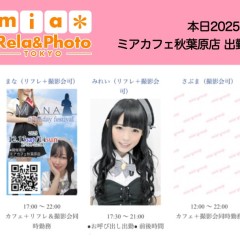 | å¶æ¥æé | âãã¢ã«ãã§æ±äº¬åºïŒã¡ã€ãã«ãã§ïŒhttp://www.mia-cafe.com/ãâ â¡å¹³æ¥ãæïœéãïŒïŒïŒïŒïŒïœïŒïŒïŒïŒïŒ â¡åæã»æ¥æã»ç¥æ¥ãïŒïŒïŒïŒïŒïœïŒïŒïŒïŒïŒ â å®äŒæ¥ããªãïŒ2019幎1æããå®äŒæ¥å»æ¢ïŒ â¡ã©ã¹ããªãŒããŒãéåºã®ïŒïŒåå ãïŒïŒïŒïŒïŒéåºã®å ŽåâïŒïŒïŒïŒïŒã©ã¹ããªãŒããŒ å¶æ¥æ¥ãåºå€ç¶æ³ã«ã€ããŠã¯ãã¡ãã http://pandaland.cutegirl.jp/mif/c_cms_csv/sch_top.php âãã¢ãªã©ïŒãã©ãæ±äº¬åºïŒæ®åœ±äŒïŒãªãã¬ïŒhttp://www.mif-lr.com/ãâ â¡å šæ¥ãïŒïŒïŒïŒïŒãïŒïŒïŒïŒïŒãã§ãããªã©ã¯ãŒãŒã·ã§ã³åºå€ã¹ã¿ãããããæé垯ã®ã¿å¶æ¥ã§ãã â å®äŒæ¥ã¯äžå®äŒïŒåºå€ã¹ã¿ãããããæé垯ã®å¶æ¥ïŒ â¡æçµåä»ãéåºã®ïŒïŒåå ãïŒïŒïŒïŒïŒéåºã®å ŽåâïŒïŒïŒïŒïŒïŒïŒïŒïŒïŒïŒè¿ã«æœè¡æéãçµããã³ãŒã¹ïŒ â»é«æ ¡çäžå¯ âæ·±å€å¶æ¥ã«ã€ããŠã¯ãå ¬åŒãµã€ãå³äžã® http://market.chu.jp/schedule1/sche37.cgi ãã¢ã°ã«ãŒãç·åã¹ã±ãžã¥ãŒã«ïŒïŒ°ïŒ£ã»ã¹ããïŒ http://market.chu.jp/schedule1/sche37.cgi?dm=1 ãã¢ã°ã«ãŒãç·åã¹ã±ãžã¥ãŒã«ïŒã¬ã©æºåž¯ïŒ ãã芧ãã ãããåç¥æ¥ã®ã¿å¶æ¥ãšãªããŸããåç¥æ¥ä»¥å€ã¯æ·±å€å¶æ¥ããããŠãããŸããã æ·±å€å¶æ¥å¯Ÿè±¡æ¥ãïŒïŒïŒïŒïŒãç¿æïŒïŒïŒïŒïŒïŒ¬ïŒïŒ¯ïŒïŒïŒïŒïŒïŒ | ||||||||||||||